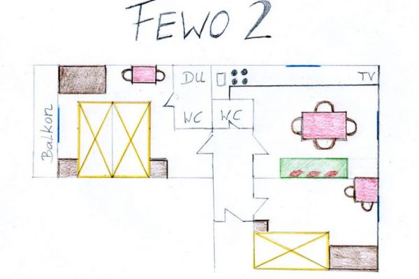 Es ist eine abgeschlossene Wohnung und sehr gut geeignet für eine Familie mit Kindern. Es gibt eine Wohnküche mit Esstisch, einer Couch , SAT-TV, Internet mittels W-Lan und einer komplett eingerichteter Küche mit Geschirrspülmaschine. Das Schlafzimmer hat ein Doppelbett, DU/WC, Balkon und Platz für ein Zustellbett.